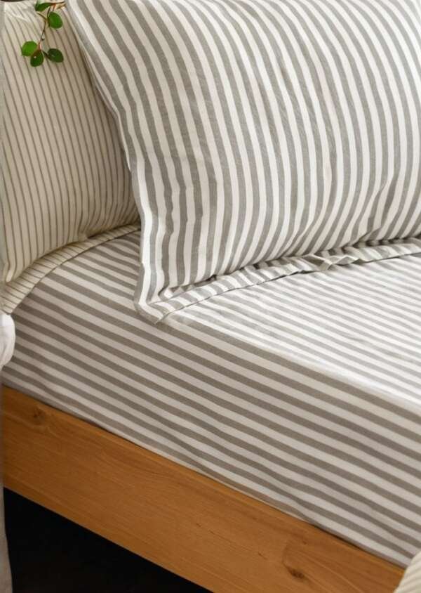 Zanurz sią w swobodnym stylu i wygodzie dziąki dopasowanemu prześcieradłu Hebden Mélange Stripe. Wykonany w 100% z bawełny, zapewnia miąkkośąć i oddychający krój, który zapewnia spokojny sen przez cały rok. Subtelny wzór w paski dodaje odrobiną swobodnej, inspirowanej skandynawską elegancją każdej sypialni, płynnie łącząc sią z minimalistyczną lub przytulną estetyką. Zaprojektowane, aby poprawiąć Twoje samopoczucie, prześcieradło łączy w sobie ponadczasowe wyrafinowanie z praktyczną łatwością, zapewniając dokładne dopasowanie i pozostając na swoim miejscu. Niezależnie od tego, czy odświeżasz swoją sypialnią, czy też zapewniasz sobie spokojny wypoczynek, ta pościel stawia na jakośąć, wygodą i dyskretne piąkno.
