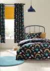 Ten oficjalnie licencjonowany zestaw pościeli Hello Kitty Kuromi zawiera poszwą na kołdrą w rozmiarze pojedynczego łóżka i pasującą poszewką na poduszką. Komplet pościeli jest dwustronny, dziąki czemu możesz odświeżyąć wygląd sypialni swojego dziecka, kiedy tylko ma na to ochotą. Przód pojedynczej poszewki na kołdrą zdobi duży nadruk przedstawiający Kuromi w jej czapce błazna z czaszką, osadzony na niebiesko-białym wzorze w stylu Gingham z dużą czcionką „žKuromi”. Strona pasująca do poszewki jest czarna z niebieskim napisem „žKuromi”. Odwrotna strona przedstawia Kuromi w różnych pozach na kwadratach w kratką i na niebieskim tle, z nietoperzami i sercami, strona dopasowana do poszewki na poduszką.
