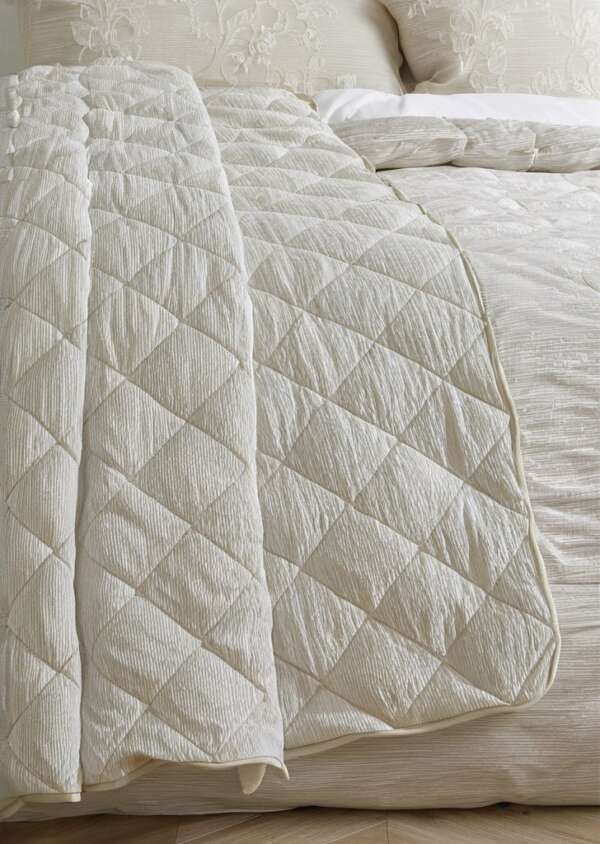 Pikowana narzuta na łóżko Corded Leaves w kolorze szampańskiego złota
