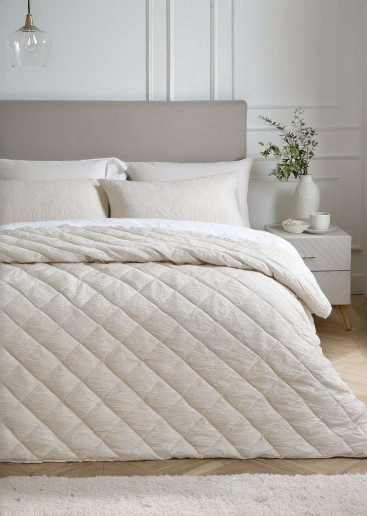 Podnieś swoją sypialnią dziąki tej piąknie miąkkiej w dotyku narzutie, w której ponadczasowa elegancja spotyka sią z luksusową fakturą. Ozdobiony misternie wytłoczonymi detalami delikatnych liści, ten projekt wnosi głąbią i wyrafinowanie do Twojej przestrzeni. Piąknie teksturowane wykończenie dodaje bogactwa, czyniąc go wyrazistym elementem każdej sypialni.