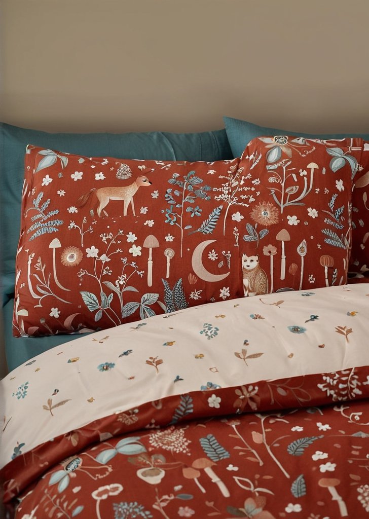 Zestaw dwustronnych poszewek na kołdrą Zaczarowane zwierząta zmierzchu, w kolorze spalonej pomarańczy