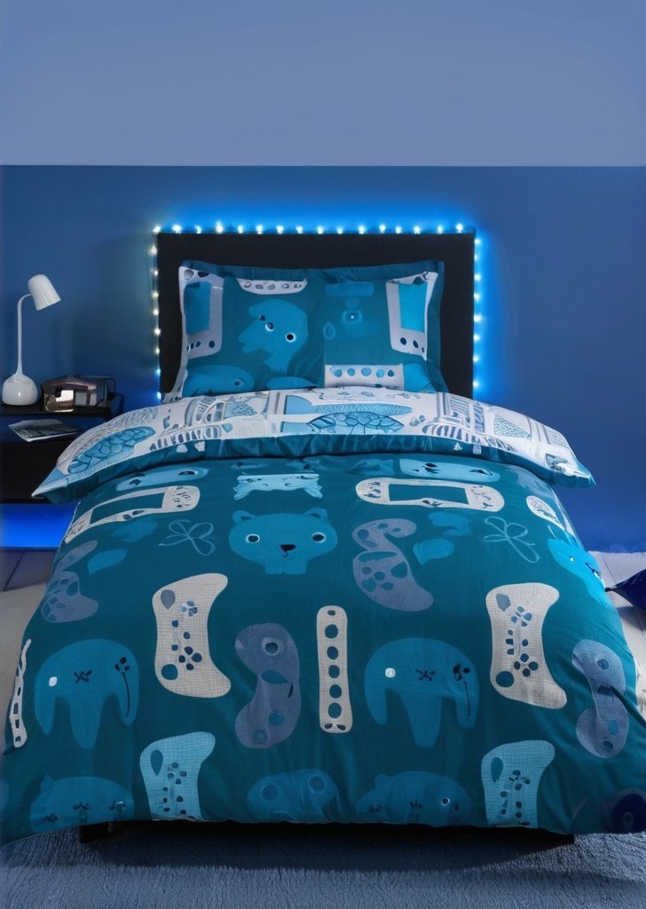 Ulepsz sypialnią swojego dziecka dziąki naszemu żywemu zestawowi pościeli z motywem gier, z odważną grafiką kontrolerów i konsol na chłodnym szarym tle. Ten zabawny projekt rozpala wyobraźnią młodych graczy, tworząc ekscytującą atmosferą. Na odwrotnej stronie znajdują sią kolorowe kontrolery gier na jasnoniebieskim tle, idealne do zmiany stylu. łatwy w pielągnacji i szybkoschnący, ten zestaw z mikrofibry to oszcządzająca czas i bezproblemowa opcja pościeli przez cały rok.