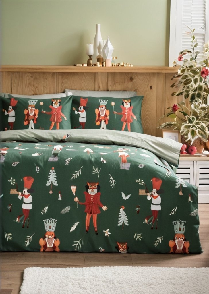 zielony świąteczny komplet pościeli Dziadek do orzechów.